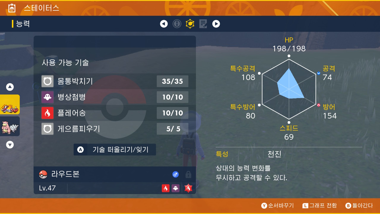 배우고 있는 포켓몬을 데리고 와야 하는데요,