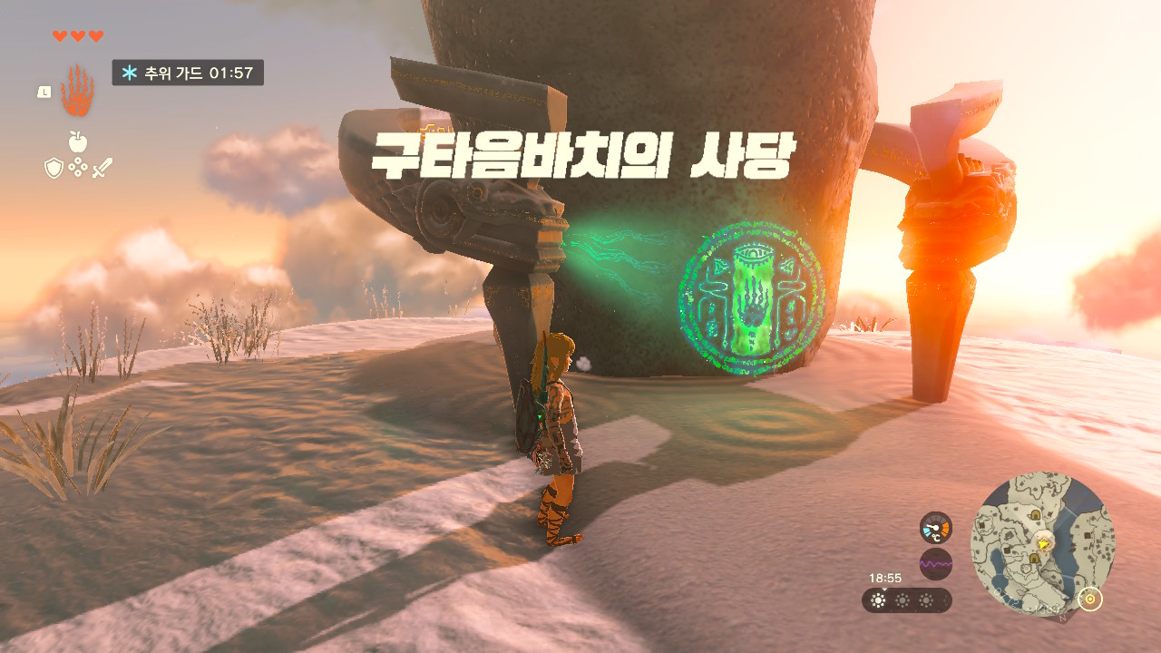 젤다의 전설 왕국의 눈물, 티어스 오브 더 킹덤에서 초반에 사당을 돌다 보면 추운 지역을 지나가게 됩니다. 하지만 추위 가드가 없다면 생명력이 계속 줄어들어 더이상 진행할 수 없는데요, 이