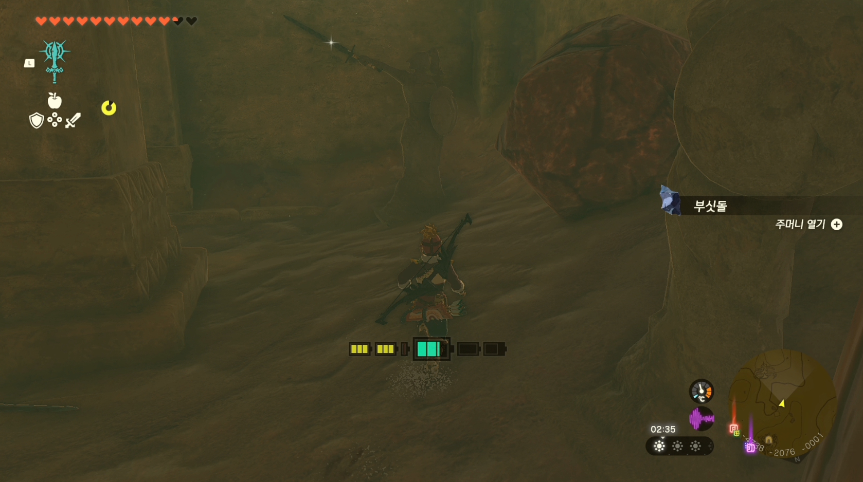 돌을 부수고 안으로 들어갑니다.