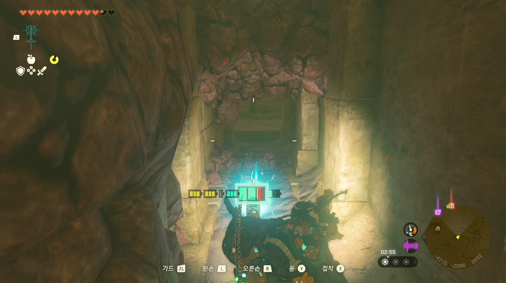 계속해서 돌을 부수며 안으로 들어가면 됩니다.