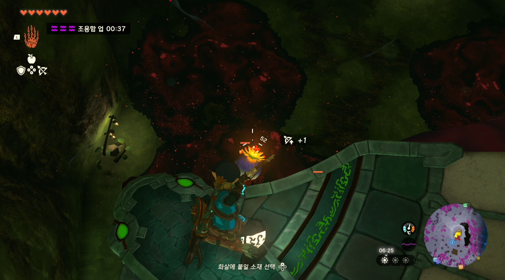 냉기열매나 다른 아이템을 화살에 붙여서