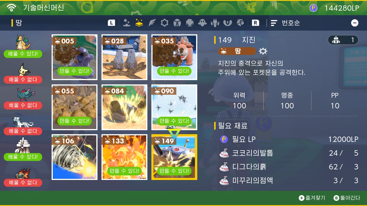 다양한 기술머신으로 포켓몬에게 기술을 배우게 할 수 있는데요.