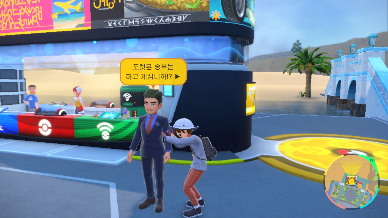 포켓몬 승부를 얼마나 하는지 묻고 있는 캐릭터가 있는데요.