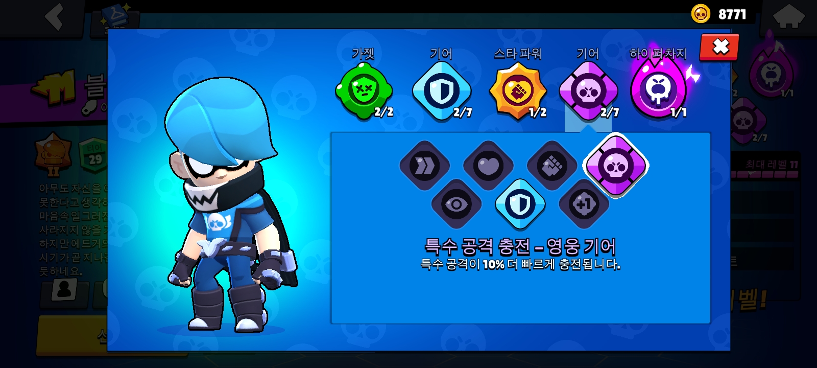 에드거의 영웅기어는 특수 공격을 10% 빠르게 충전시켜 줍니다.