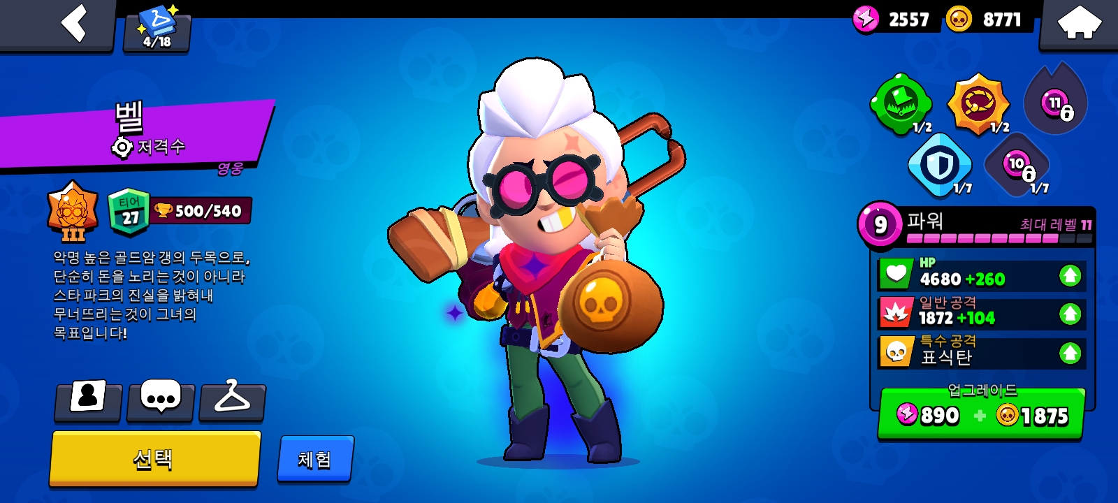 벨은 한번쯤 키워둬야 할 브롤러로 적극 추천 드립니다.