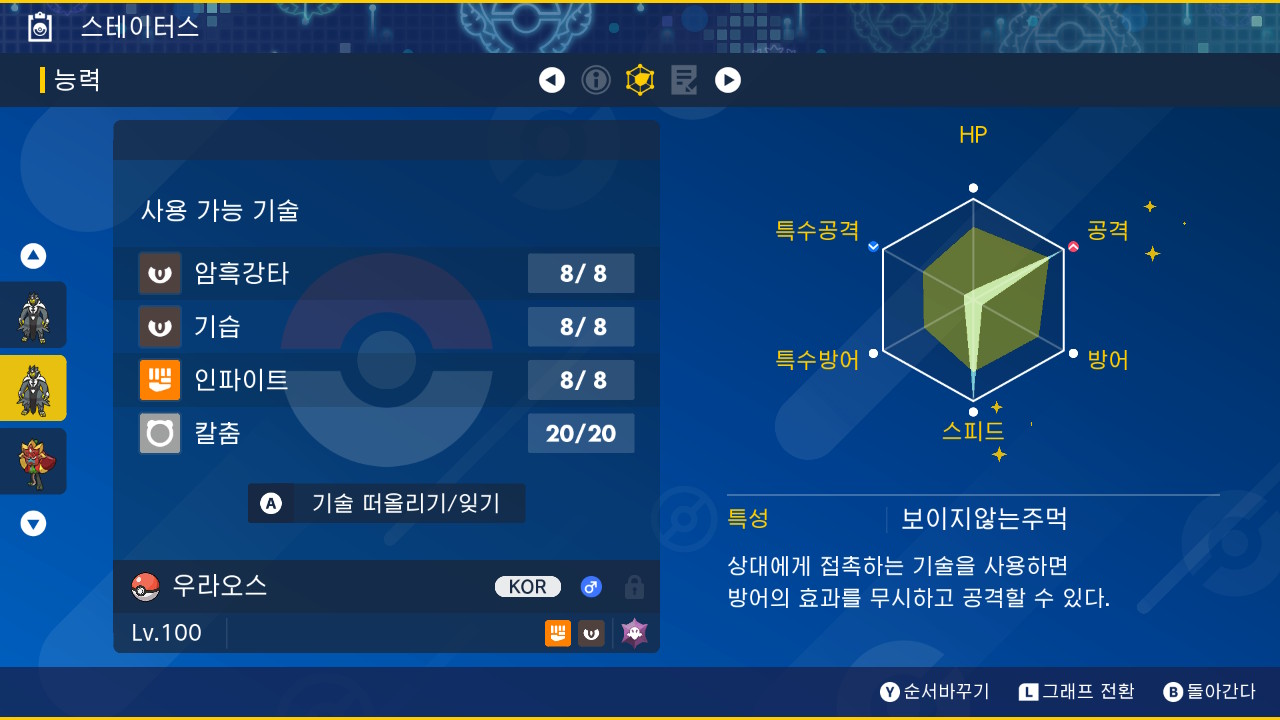 노력치 : AS252 (공격, 스피드)