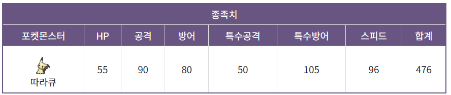 우선 따라큐의 종족값을 보면