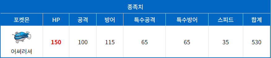 어써러셔는 물타입 특유의 안정적인 방어상성과