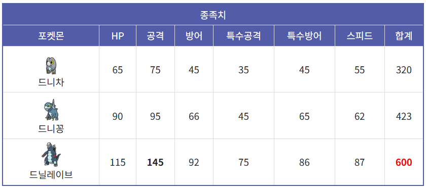 드닐레이브의 종족값은 600족으로